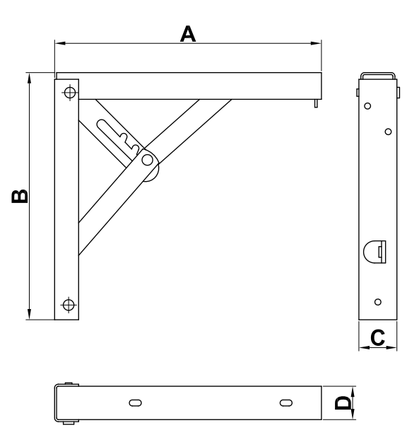 Deze plankdrager is in te klappen nadat deze bevestigd is op een muur.