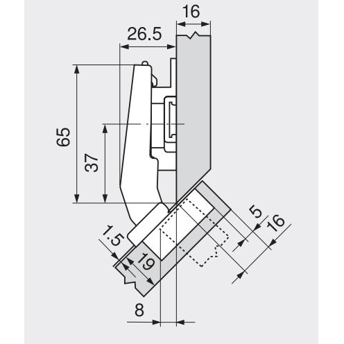 De potmaat van dit scharnier is 35mm en de boordiepte minimaal 11,5mm. Door middel van een schroef is de bodemplaat te verwijderen en daardoor is dit scharnier erg makkelijk te bevestigen. Ook is het scharnier gemakkelijk af te stellen door middel van slobgaten en stelschroeven.