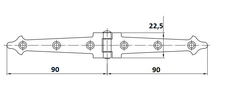 Zwart bladscharnier 90x22,5x1,5mm